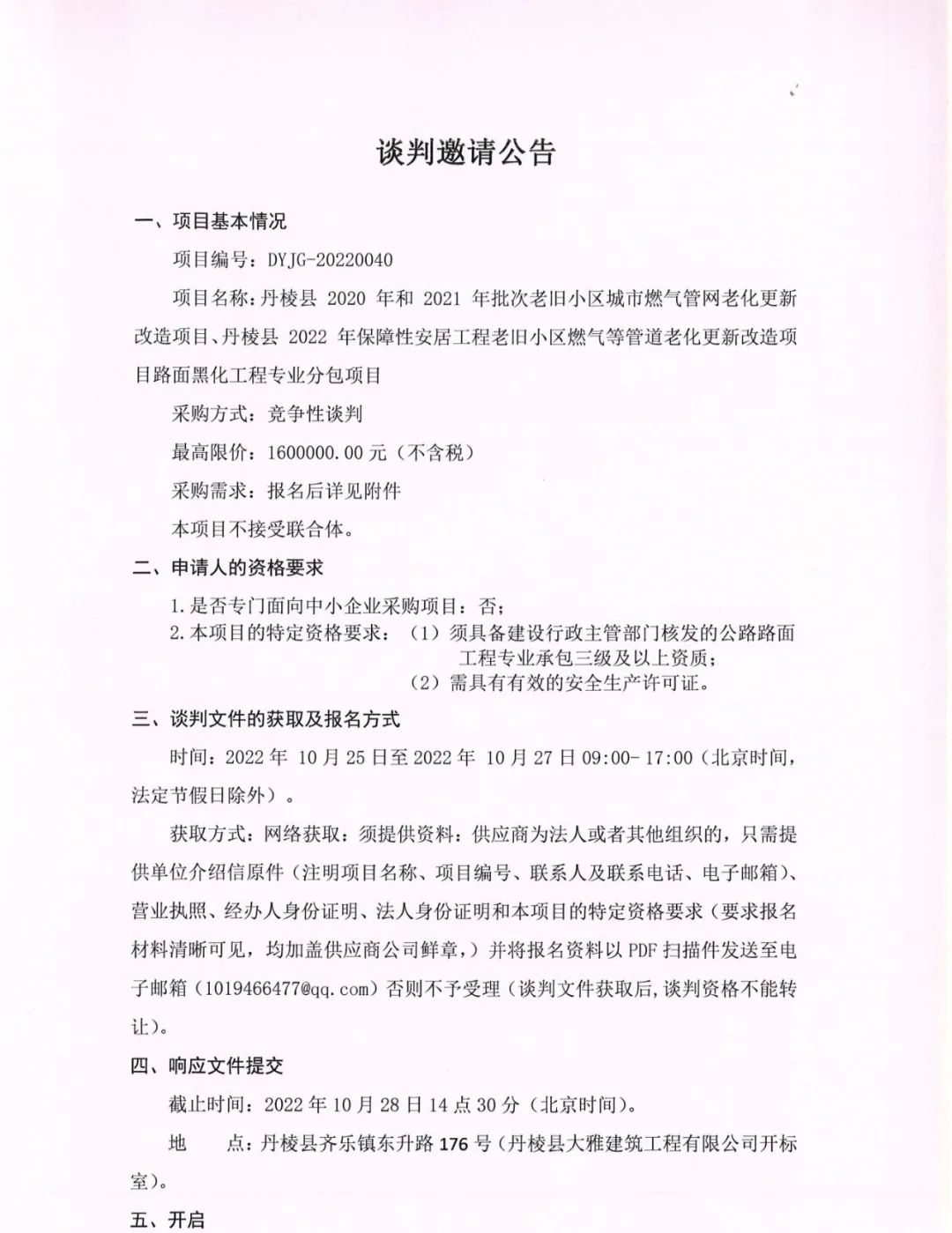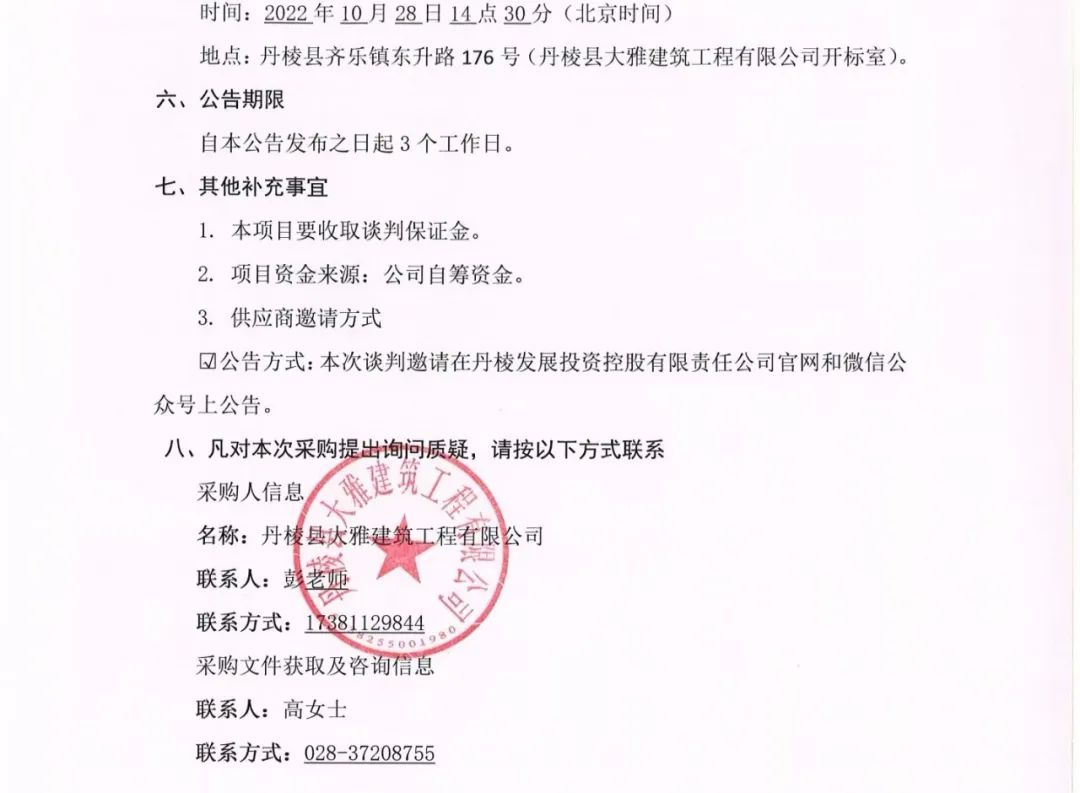 丹棱縣 2020 年、 2021 年、 2022 年保障性安居工程老舊小區(qū)燃?xì)獾裙艿览匣赂脑祉?xiàng)目路面黑化工程專業(yè)分包項(xiàng)目談判邀請(qǐng)公告