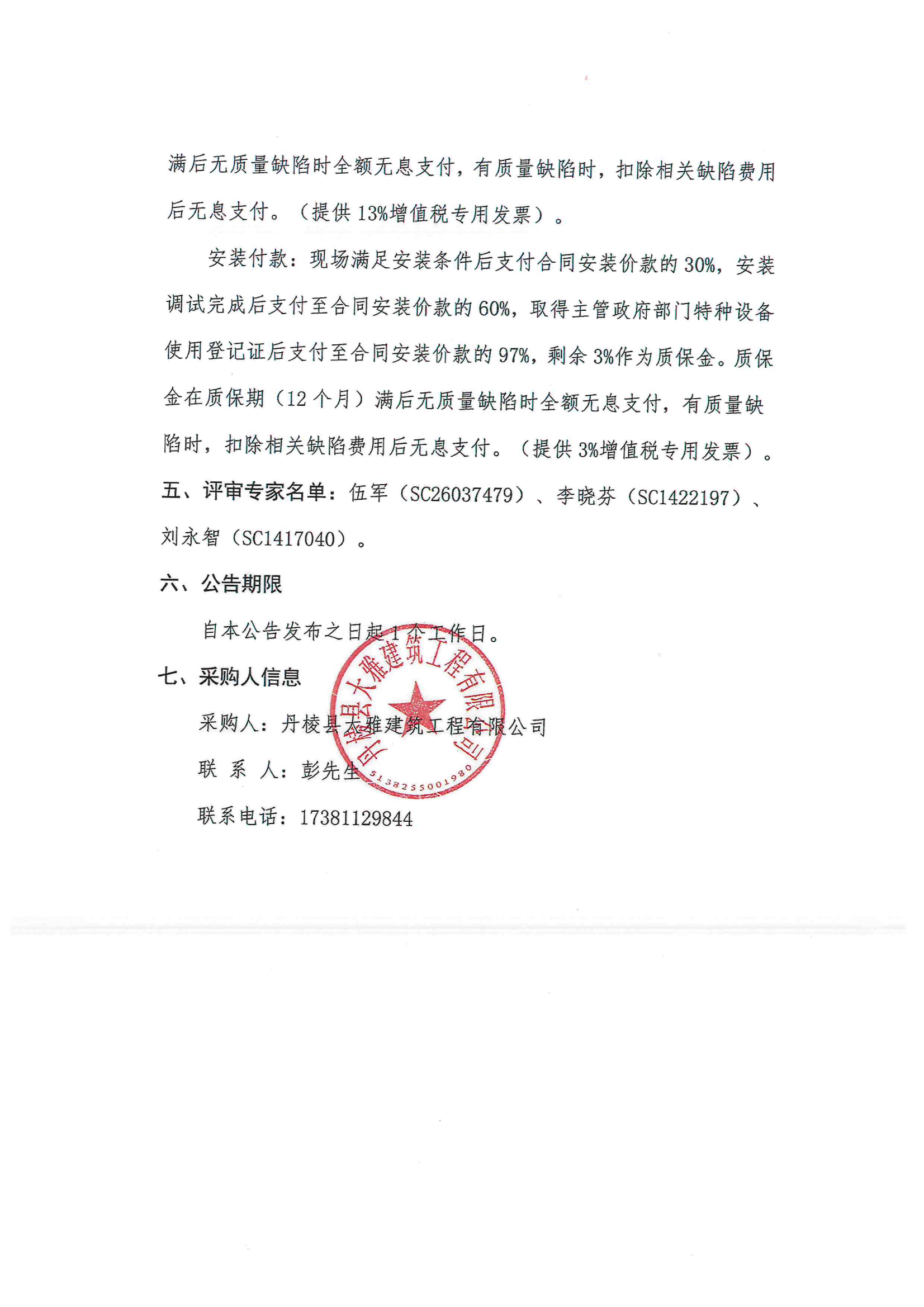 丹棱縣食品園區(qū)建設(shè)項(xiàng)目(一期)--標(biāo)準(zhǔn)化廠房一標(biāo)段(EPC)電梯采購(gòu)及安裝采購(gòu)項(xiàng)目成交結(jié)果公告