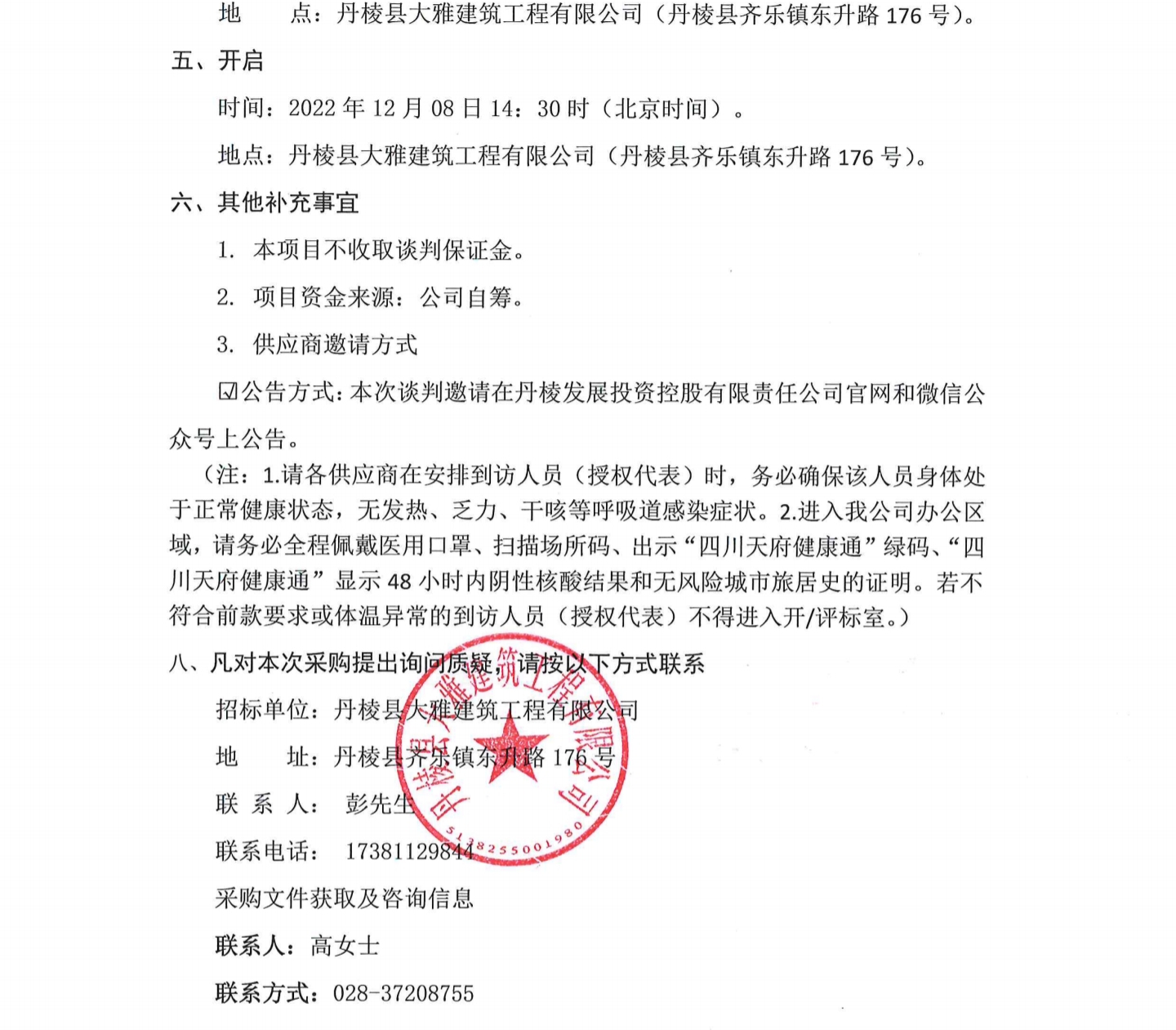 丹棱縣食品園區(qū)建設(shè)項(xiàng)目 (一期)--丹樓凍把產(chǎn)業(yè)園建設(shè)項(xiàng)目設(shè)計(jì)、施工、采購總承包 (EPC) 電梯采購及安裝采購項(xiàng)目 (第二次)談判邀請公告