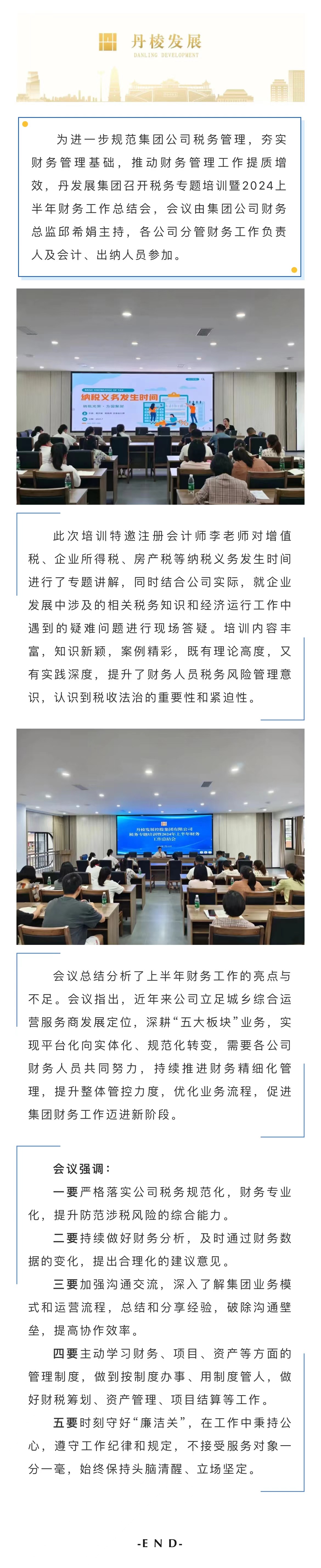 審慎嚴(yán)謹(jǐn) 聚力同行——丹發(fā)展集團(tuán)公司召開稅務(wù)專題培訓(xùn)暨2024上半年財(cái)務(wù)工作總結(jié)會