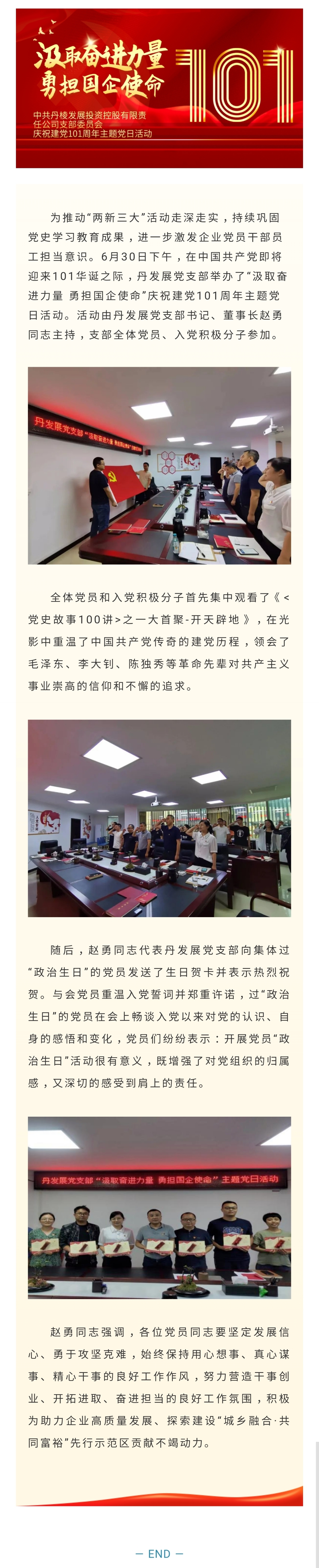 中共丹棱發(fā)展投資控股有限責任公司支部委員會“汲取奮進力量 勇?lián)鷩笫姑睉c祝建黨101周年主題黨日活動